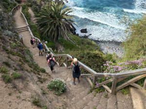 A beautiful walk amidst swaying palm trees leading to a beach with a waterfall in San Juan de la Rambla. Undoubtedly, this is one of the most unique places in Tenerife. We recommend you go at low tide to enjoy this beauty.