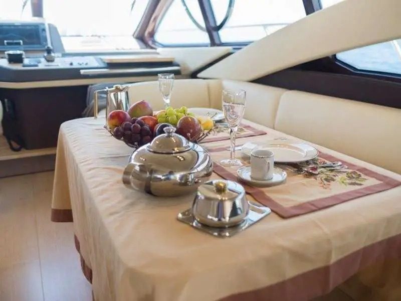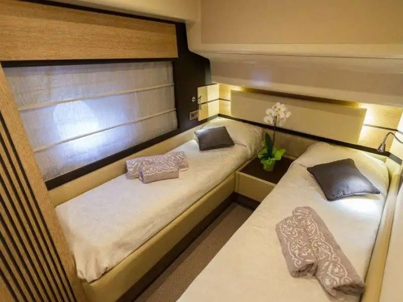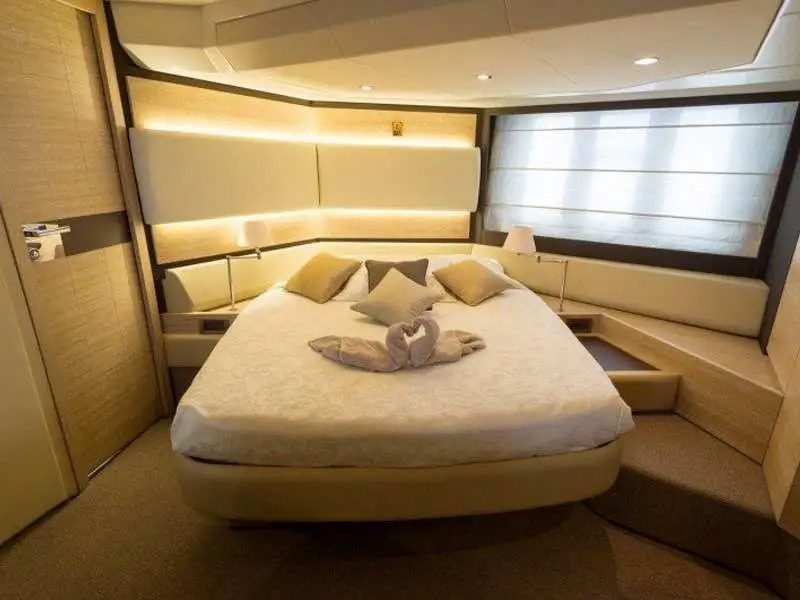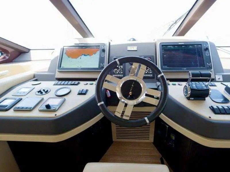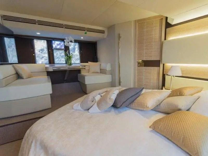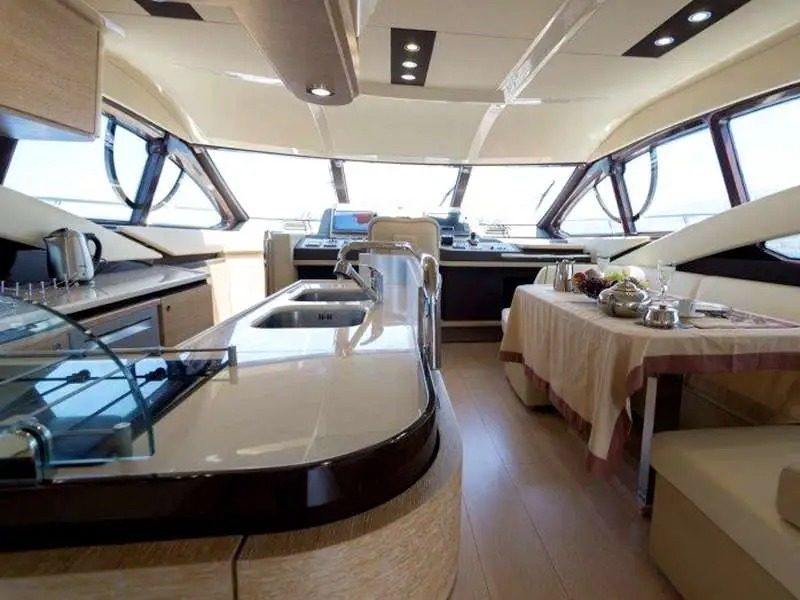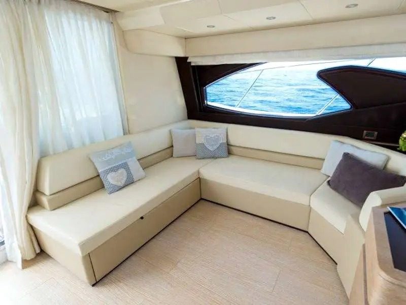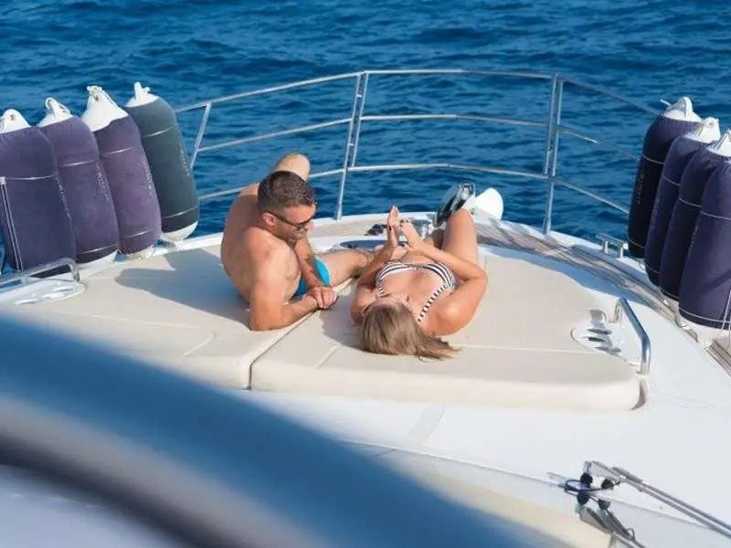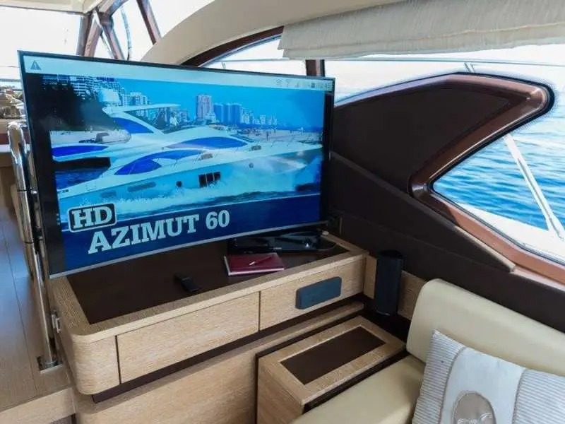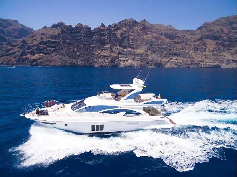 This yacht, an Azimut 60 Flybrigde, is 18.36 meters long and has a maximum capacity of up to 12 passengers.